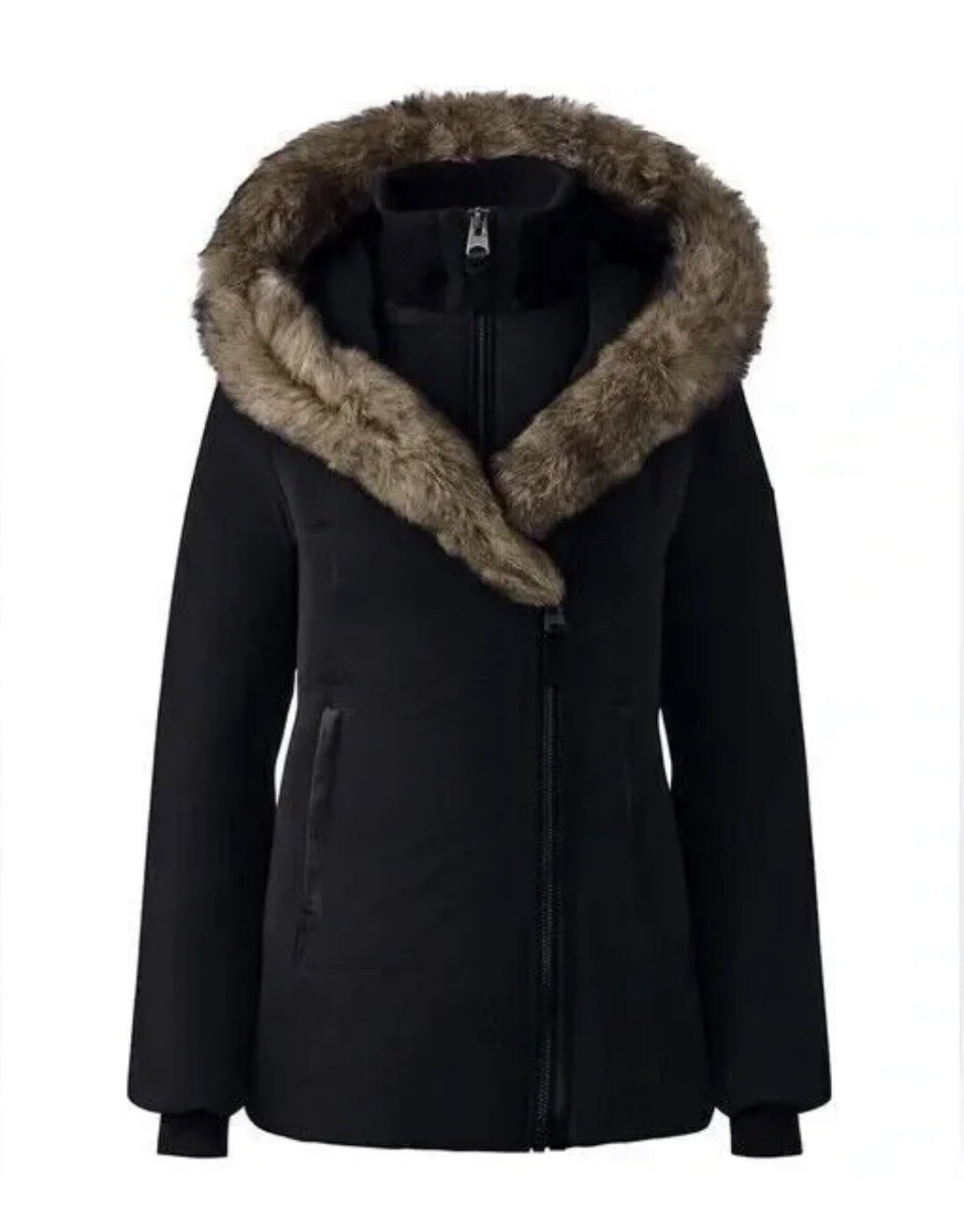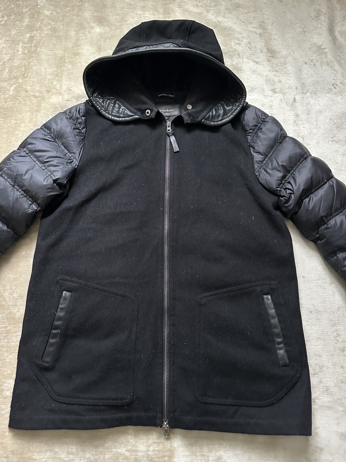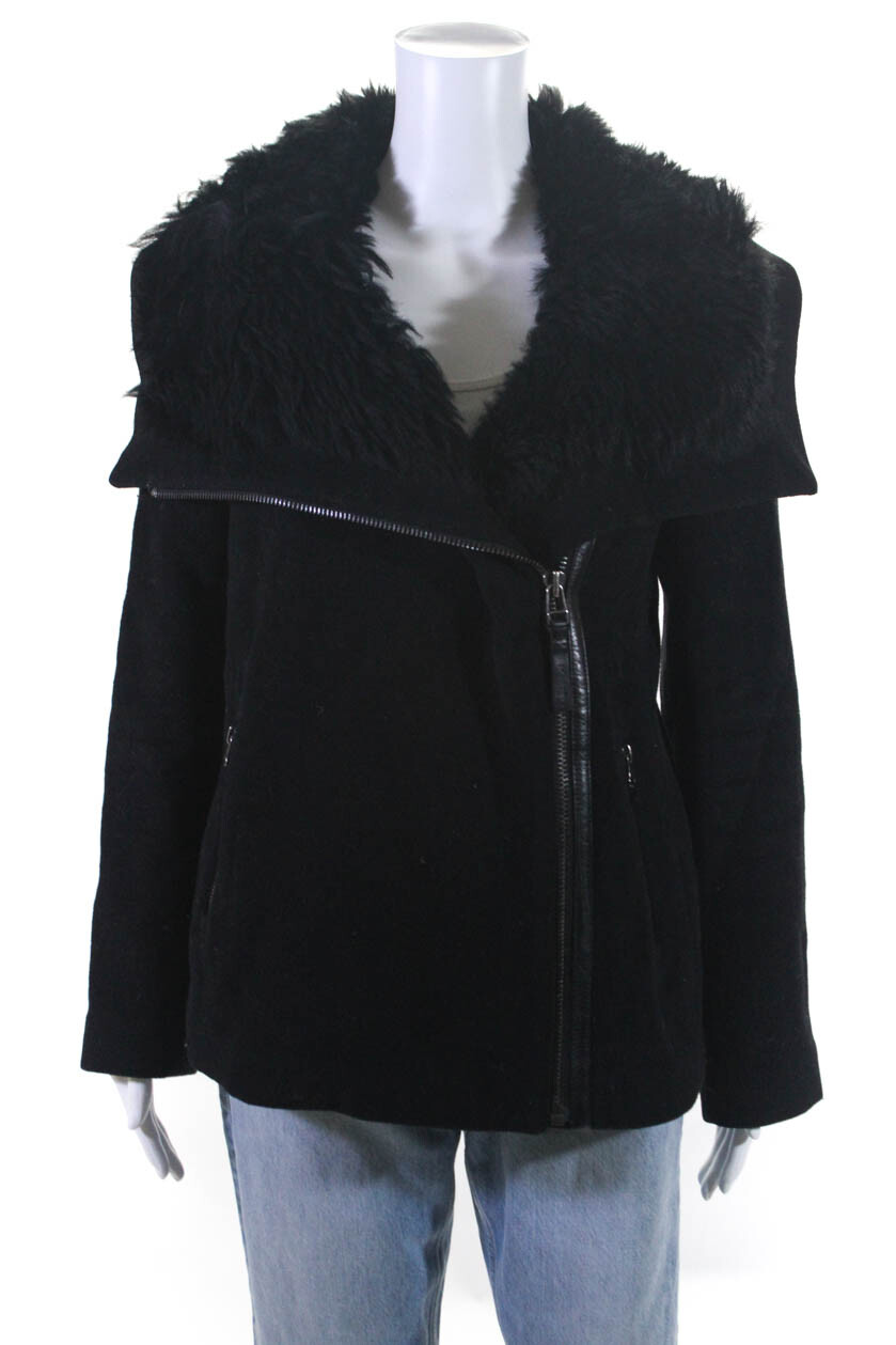 Mackage Brigdit Black Down Puffer Coat Size Medium Wool Alpaca Knit Collar